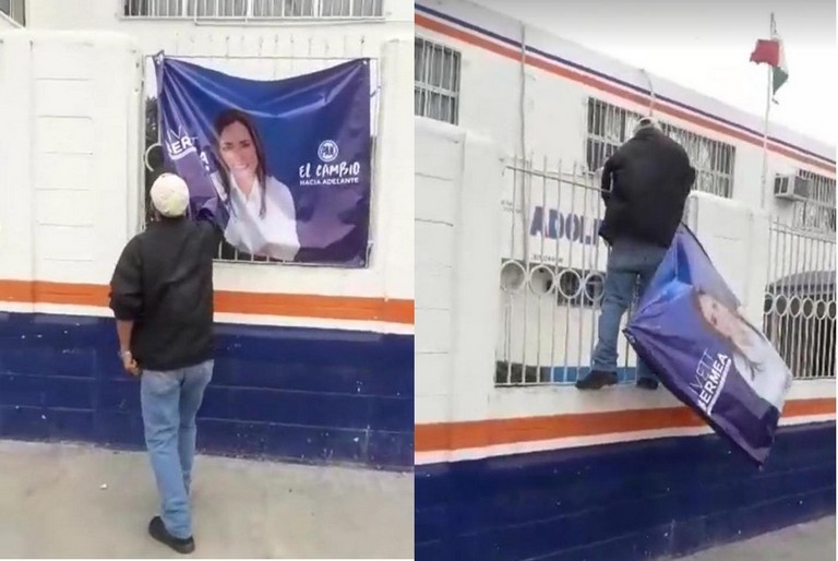 Matamoros, Tamaulipas.-Las violaciones a las leyes electorales deben de ser sancionadas, y en este caso, la que cometió Ivett Bermea Vázquez, al colocar propaganda de su precampaña interna en el barandal de la primaria Adolfo Ruiz Cortines, debe ser motivo de una penalidad.