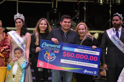 Altamira, Tamaulipas.-Con la ceremonia de premiación a los ganadores de las diferentes categorías de comparsas, carros alegóricos, disfraz y botes alegóricos, culminó con gran éxito el Carnaval Altamira 2019 œLa Alegría y Diversión se Trata de Ti”, enmarcando cuatro noches de auténtica fiesta y sana diversión, donde se dieron cita miles de personas que disfrutaron de estos festejos que cerraron con la presentación musical de Edwin Luna y la Trakalosa de Monterrey, en las instalaciones de la Unidad Deportiva.