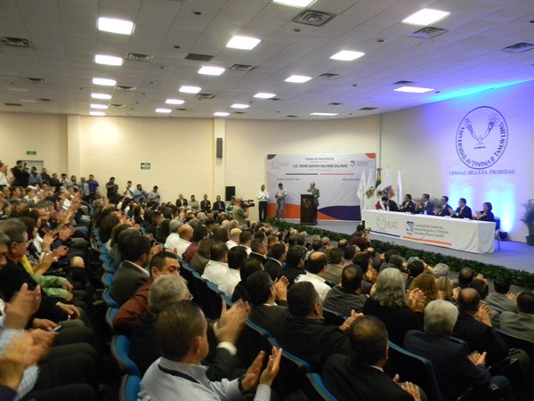 Estuvieron como invitados especiales en el estrado además del rector, del alcalde y de los directores entrante y saliente, el secretario de administración de la UAT, Víctor Hugo Guerra García, y la directora de la facultad de enfermería en la ciudad, Selene Alarcón.