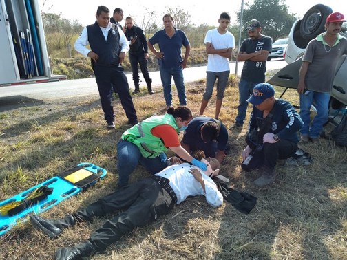 Altamira, Tamaulipas.-Esta mañana de domingo se registró una volcadura sobre la carretera Tampico Mante a la altura del ejido Esteros de Altamira que dejó como resultado dos personas del sexo masculino con diversas lesiones.