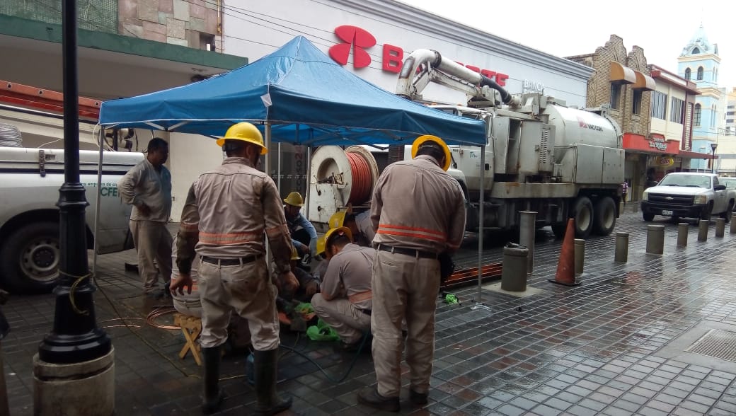 En dicho lugar se observaron más de 5 unidades de la Comisión Federal de Electricidad que hicieron el trabajo en coordinación con la Comisión Municipal de Agua Potable, quienes desazolvaron el registro.