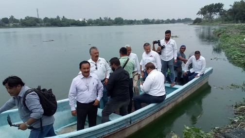 Madero, Tamaulipas.-El alcalde de Ciudad Madero, Adrián Oseguera Kernion, realizó un recorrido por la laguna “La Ilusión”, para constatar la limpieza que se realizo del vaso de captación.