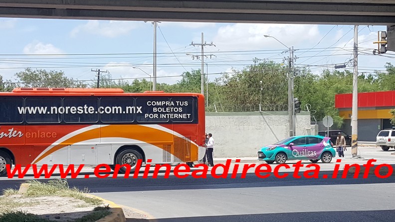 En ese lugar se encontraba un autobíºs Marcopolo, color naranja con franjas blancas, modelo aproximado 2005, con placas de circulación del registro píºblico federal, y que tiene como razón social servicio de transporte terrestre Inter enlace.