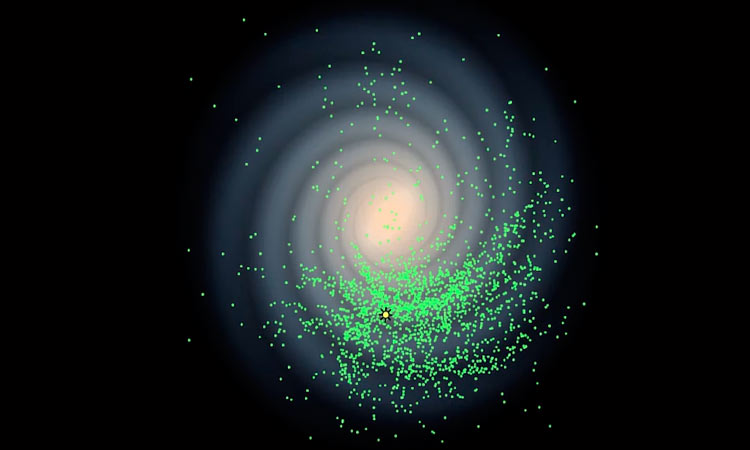 El mapa tridimensional recién construido de la Vía Láctea es el primer mapa que se basa en distancias directas a miles de objetos individuales tan distantes como el límite esperado del disco galáctico. El mapa demuestra que el disco de la Vía Láctea no es plano, está deformado a distancias superiores a 25,000 años luz del centro galáctico”.