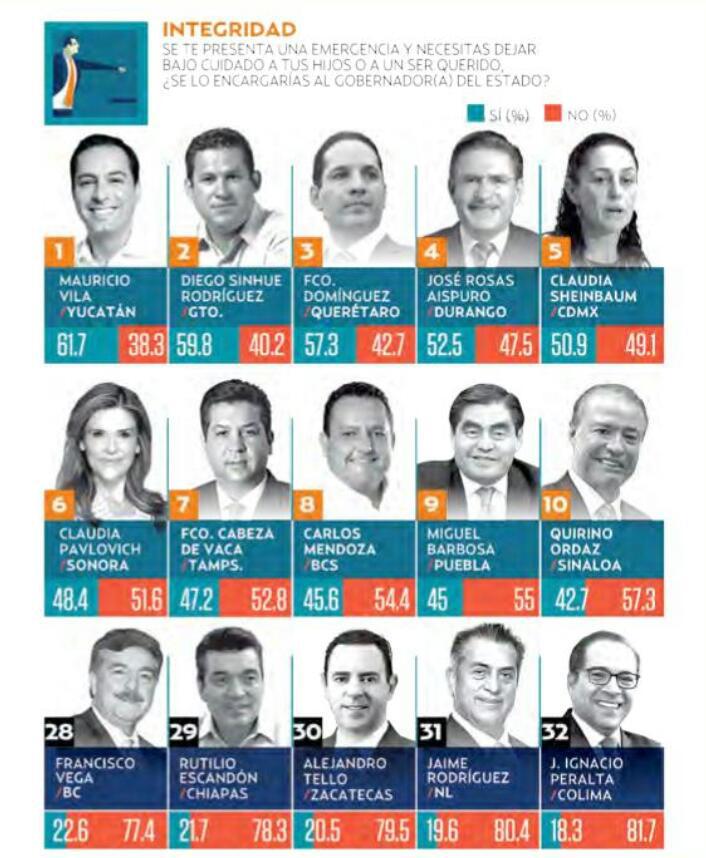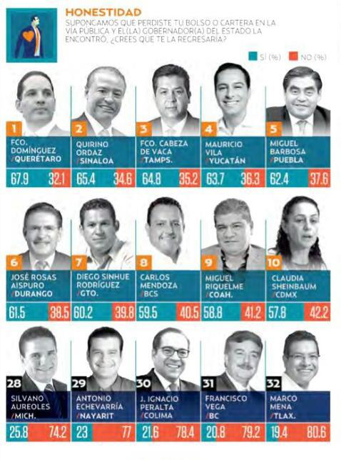 Cabeza de Vaca aparece en la tercera posición de los gobernadores más honrados, sólo por debajo de Francisco Domínguez de Querétaro y Quirino Ordaz de Sinaloa.
