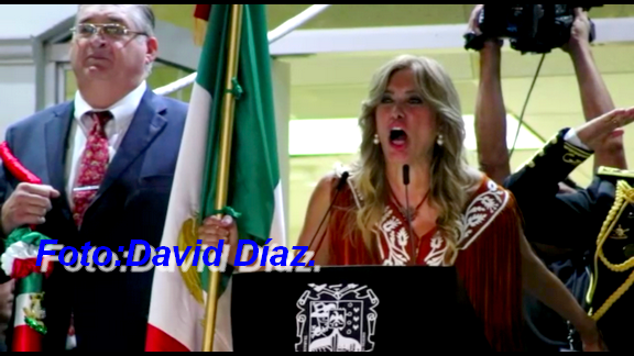 Reynosa, Tamaulipas.-Ante miles de reynosenses reunidos en la Plaza Principal Miguel Hidalgo y Costilla, celebraron el 209 aniversario del grito de independencia, donde la alcaldesa Maki Ortiz Domínguez, fue quien presidio la ceremonia.