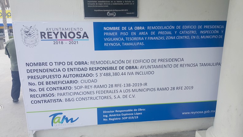 El costo de la obra fue de $3, 488,380.44 y que fueron con participaciones federales a los municipios dentro del ramo 28, dicha obra comprende la remodelación del área del Predial y Catastro, Inspección y Vigilancia, y Tesorería y Finanzas.