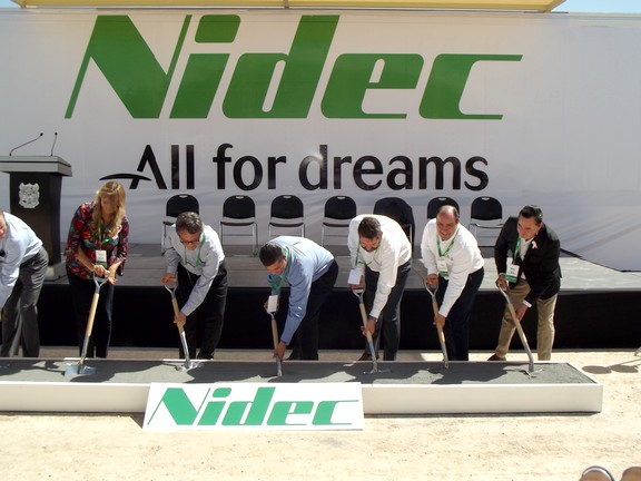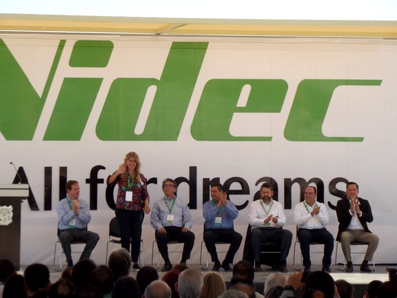 Finalmente al término de su mensaje se realizo la puesta en marcha del arranque de la construcción de la nueva planta maquiladora Nidec Motores, que estará ubicada en el parque industrial Villa Florida a un costado de la colonia Vista Hermosa.