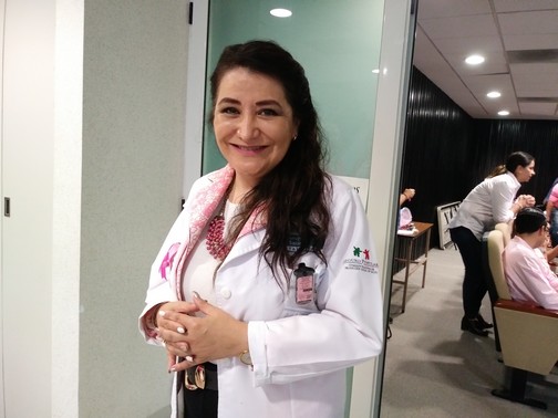 œEn proporción del cáncer de mama en mujeres en relación que varones, el de mama supera muchísimo al de varones, por lo que mi deseo y el del hospital es que todas las mujeres se concienticen y a la vez sean promotoras de concientizar en sus casas, dar esta enseñanza sencilla también en sus casas con el propósito de que todas hagamos conciencia, soy mujer, tal vez no tenga antecedentes de cáncer de mama, pero si me puede dar.