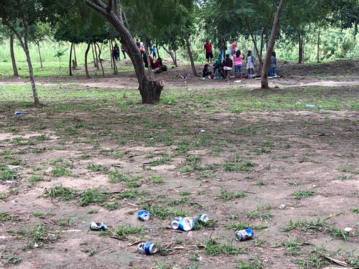 En varios puntos de lo que es el área que se han adjudicado para permanecer con sus familias se detectaron que habían consumido varias cervezas, en un punto se apreciaron dos cartones de six packs tirados dentro de una bolsa de un negocio de autoservicio.