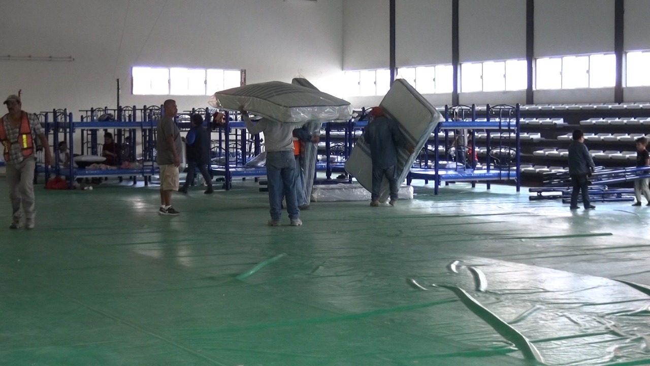 Desde las primeras horas de este día, empezaron a llegar las literas que en total serán 300 las que se instalarán en el área de usos míºltiples de la unidad deportiva.