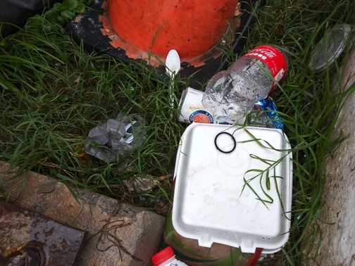 Justo frente al edificio de Repatriación Humana del Instituto Nacional de Migración se pudieron observar varias latas de cervezas escondidas entre los desechos que dejan los migrantes.