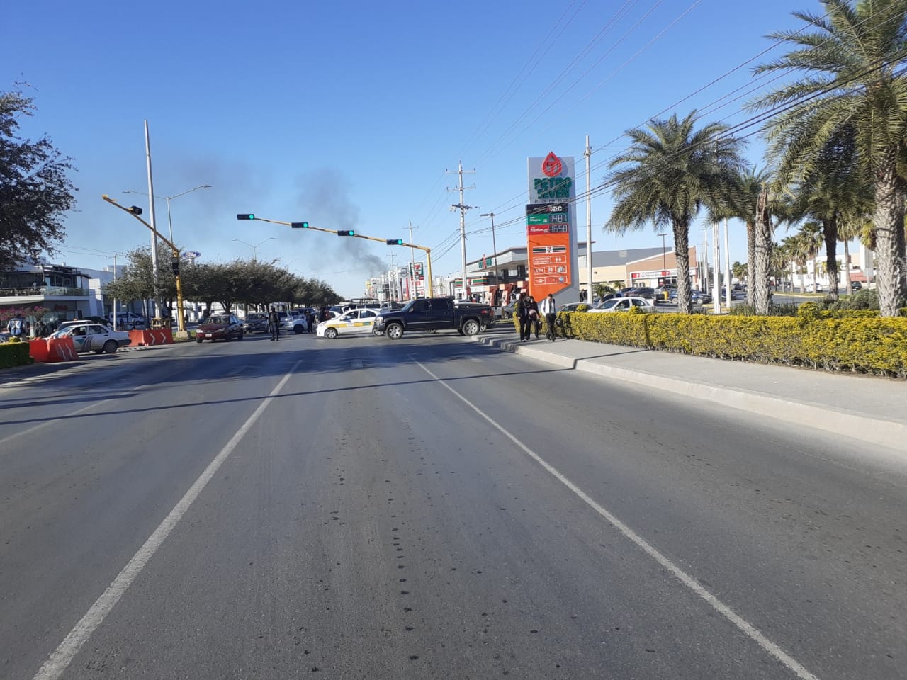 REYNOSA, TAM.- La Coordinación de Protección Civil y Bomberos y la Dirección de Tránsito y Vialidad del Municipio suspendieron la circulación vial en el bulevar Hidalgo, 500 metros al oriente y 500 metros al poniente, frente a la colonia Valle Alto, por situación de emergencia derivada del incendio en una gasera.