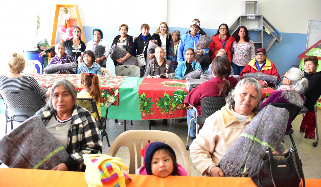 El Club de abuelitos de la colonia Almendros se vieron beneficiados con más de un centenar de cobijas, luego de que el ingreso del frente frío níºmero 23 dejara bajas temperaturas en esta zona.