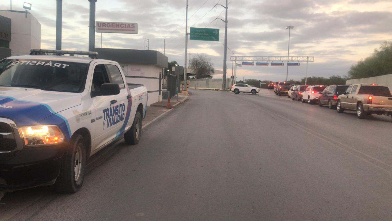 La Secretaría de Seguridad Píºblica Municipal, a través de Tránsito y Vialidad, está presente en el citado libramiento a la altura del puente elevado hasta el puente internacional Reynosa-Hidalgo, a donde se puede acceder desde el Libramiento Oriente, con la finalidad de orientar y auxiliar a quienes hacen fila y a quienes circulan por la zona y evitar congestionamiento, para lo cual es indispensable la colaboración de los automovilistas, respetando la fila íºnica.