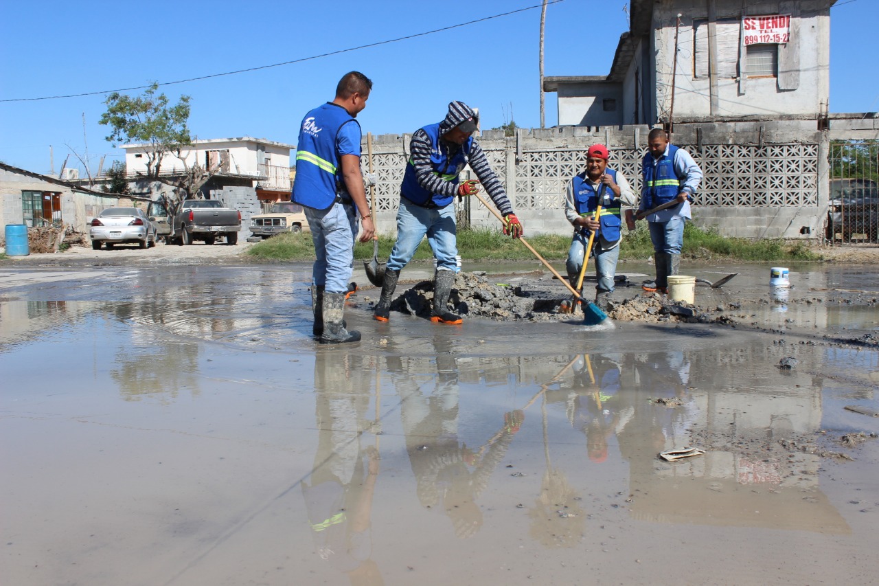Reynosa, Tam.-Personal de COMAPA Reynosa activó una brigada de atención a reportes de fugas de agua potable y residuales en la colonia Benito Juárez.