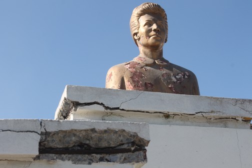 Hoy luce ausente de cuidado y mantenimiento, la basura y desechos se acumulan, el busto de bronce está severamente daño y el pedestal también.
