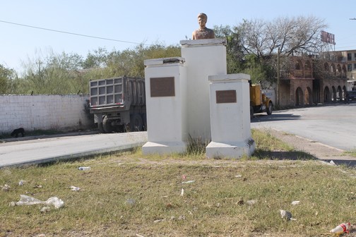 Reynosa, Tam.-Alzado en noviembre de 1999 (hace 21 años), el monumento a la maestra María J. González en la colonia Aquiles Serdán se encuentra en abandono, descuidado en su estructura y el busto erigido en su memoria luce severamente dañado.