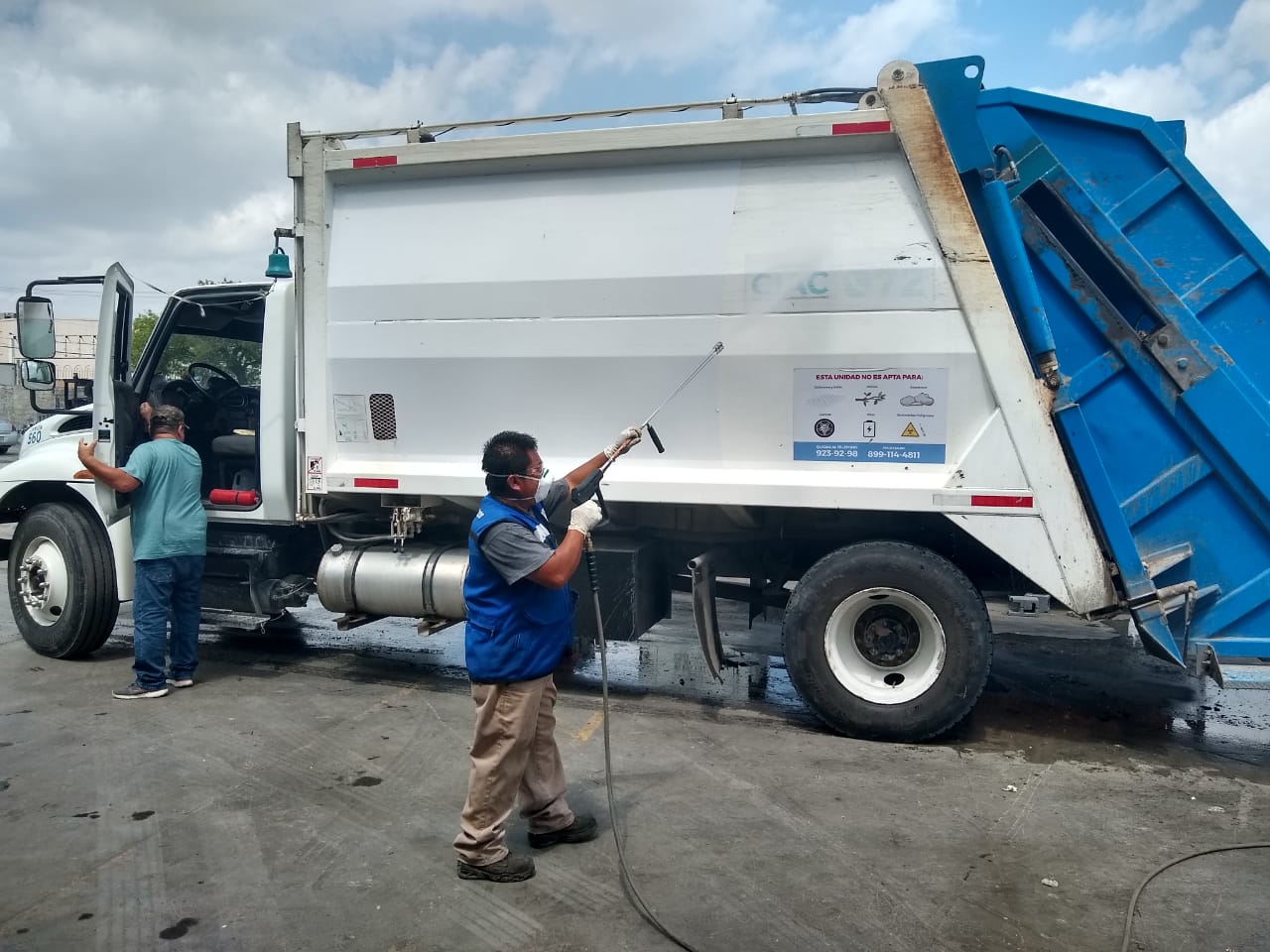 El lavado más detallado de los camiones que recorren las colonias para recoger y trasladar de manera adecuada los desechos domésticos, es una medida preventiva ordenada por la Alcaldesa, Dra. Maki Ortiz Domínguez, para elevar la seguridad de los trabajadores municipales y los usuarios.
