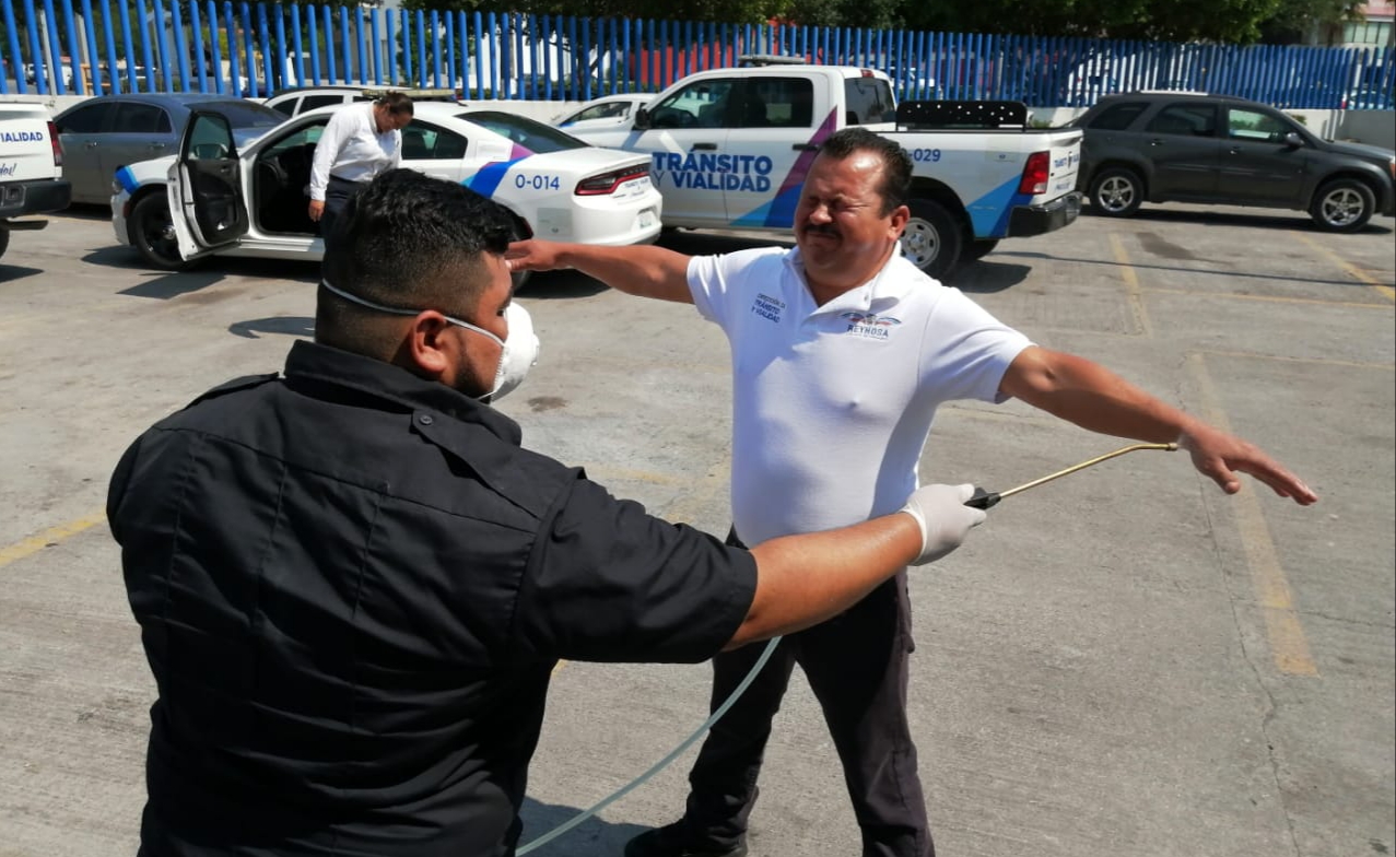 Por instrucciones de la Alcaldesa, Maki Ortiz Domínguez, la corporación vial municipal aplica las medidas de mitigación y contención del COVID19, efectuando la sanitización de sus unidades vehiculares, antes de salir y al regresar de recorridos, además de que los Agentes siguen las medidas de higiene y prevención que indica la Secretaría de Salud, utilizando guantes y cubrebocas.