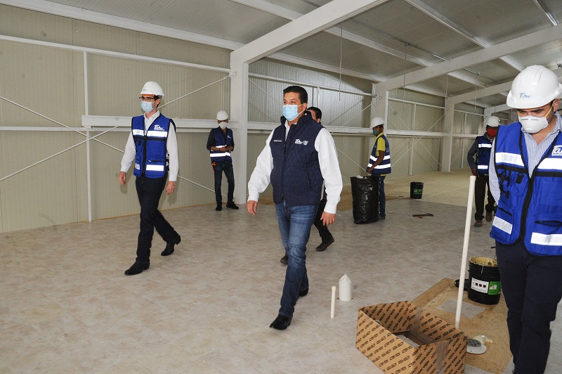 García Cabeza de Vaca supervisó los avances de la construcción del Hospital Móvil COVID-19 que se ubica contiguo al Hospital General de Ciudad Victoria.