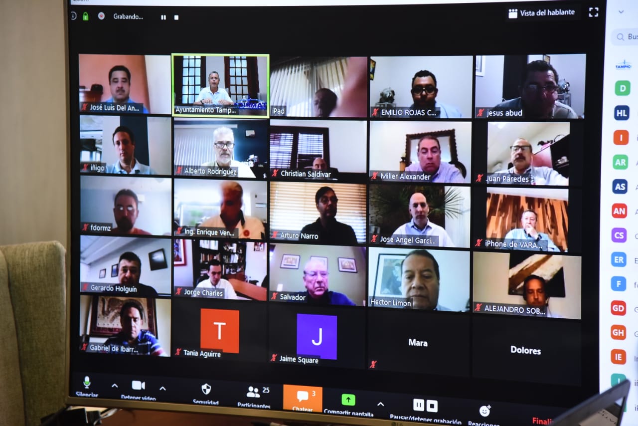Tampico, Tamaulipas.-El Presidente Municipal Chucho Nader sostuvo esta martes una importante video conferencia con empresarios miembros del Consejo de Instituciones Empresariales del Sur de Tamaulipas a quienes expuso las acciones que en materia preventiva se han desarrollado en el municipio con el propósito de contener la epidemia del Covid-19; así como los programas de apoyo a grupos vulnerables y el plan de recuperación económica que se pondrá en marcha para salir adelante de la contingencia.
