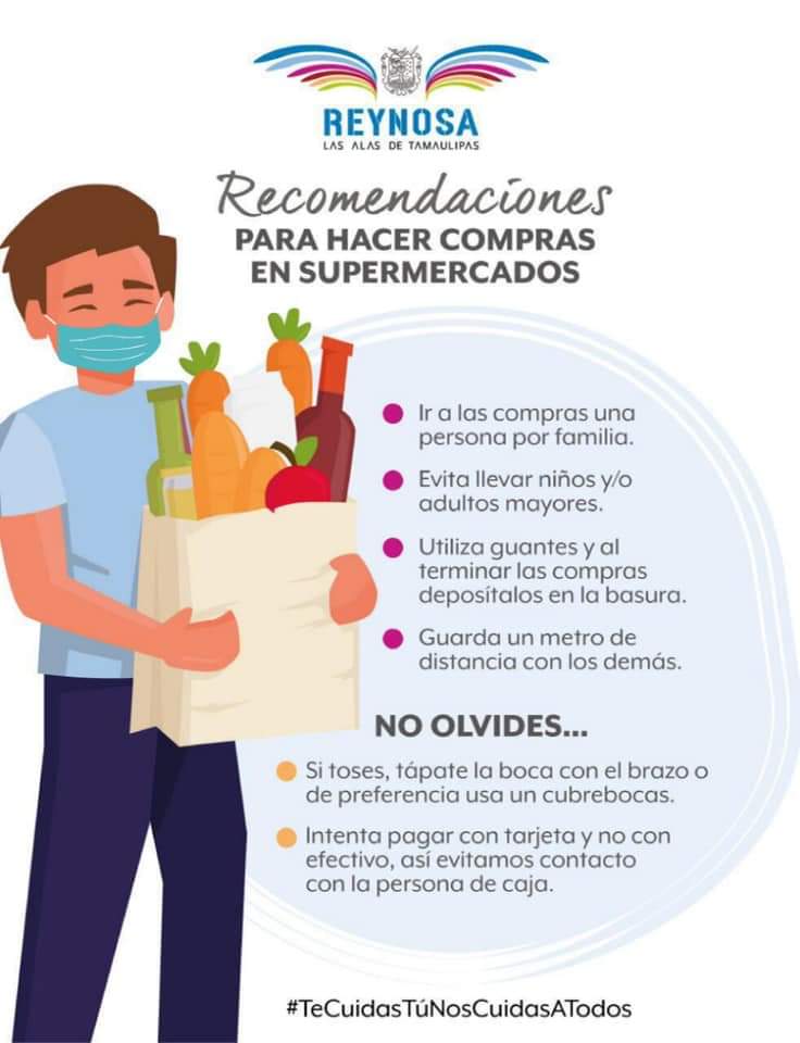 Quédate En Casa, es la primera de estas recomendaciones, para no estar expuestos a la transmisión del virus SARS-CoV2 y en caso de necesidad por acudir a las compras de productos alimenticios o medicinas, acudir sólo una persona de la familia; no exponer a niños ni adultos mayores.