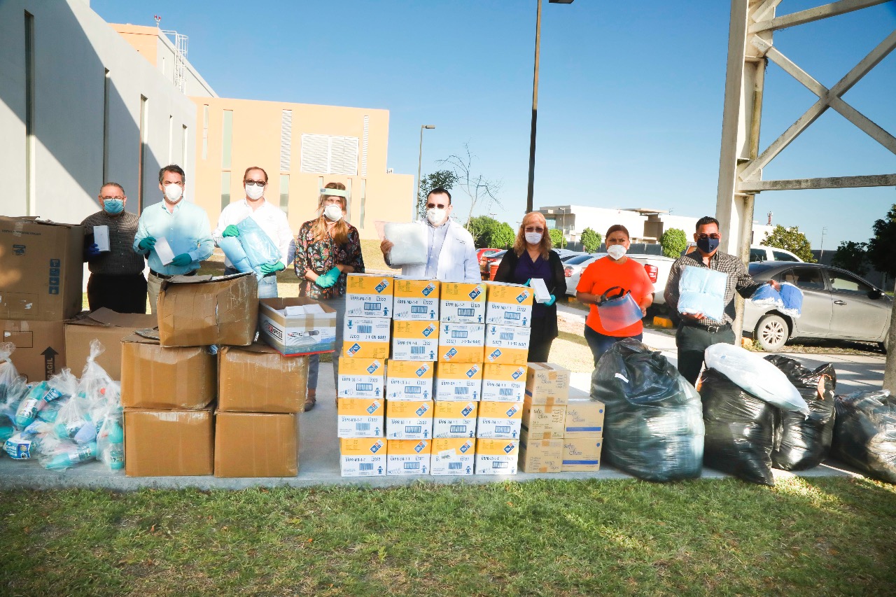 Ortiz Domínguez, arribó a temprana hora a este nosocomio, en donde reconoció el trabajo y entrega del personal médico, directivos y encargados de diversas áreas, por su esfuerzo y dedicación, que han permitido atender el Coronavirus en esta región e hizo entrega de dicho material al Director del nosocomio Dr. José Timoteo Leija Silva, como parte del programa que realiza el Gobierno Municipal para atender y mitigar los efectos del COVID-19, en donde reiteró que Juntos Saldremos Adelante de esta contingencia.