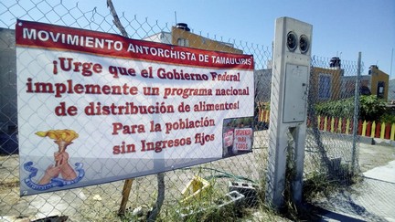 María de Jesíºs Villanueva, responsable del Movimiento Antorchista, quien dijo que son 800 familias en todo Matamoros, quienes desde este viernes colocaron este mensaje para las autoridades y volteen a verlos, ya que muchos de ellos no tienen trabajo fijo y por lo que algunos son comerciantes ambulantes y desde hace más de un mes no han generado dinero por el aislamiento social causando por el Covid-19.