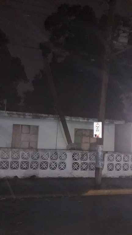 El primer reporte fue recibido alrededor de la una de la mañana, dónde se dio a conocer la caída de un poste en calle Sarabia y Orizaba de la colonia Primero de Mayo, siendo este un poste de madera de la Comisión Federal de Electricidad recargada sobre la pared de un domicilio, dando parte a esta dependencia para el retiro del mismo.