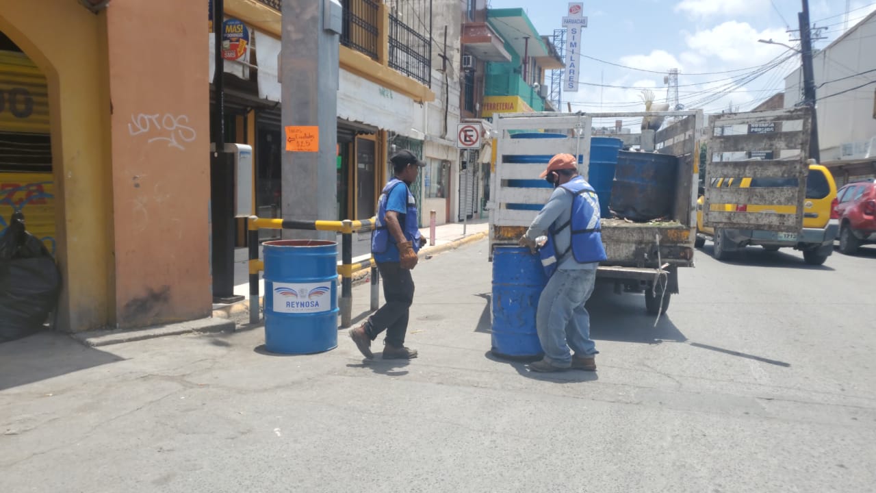 REYNOSA, TAM.-Durante la actual contingencia sanitaria por COVID-19, el Gobierno Municipal sigue atendiendo con normalidad la labor de limpieza, instrucción que ha girado la Doctora Maki Esther Ortiz Domí­nguez, para evitar la acumulación de desechos en la ciudad, en especial en la Zona Centro, donde fueron colocados nuevos tanques para la basura.