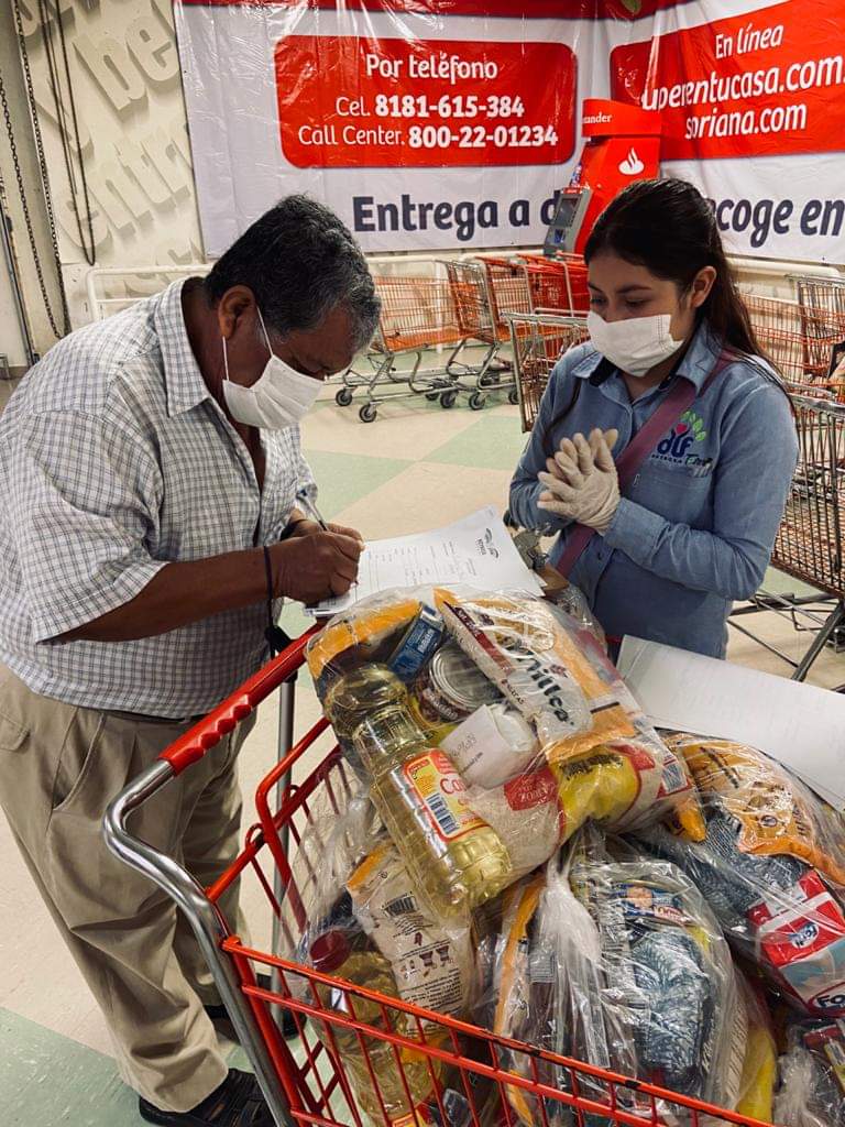 En el centro comercial, Mi Tienda del Ahorro Periférico, se entregaron los apoyos alimentarios a los abuelitos empacadores.