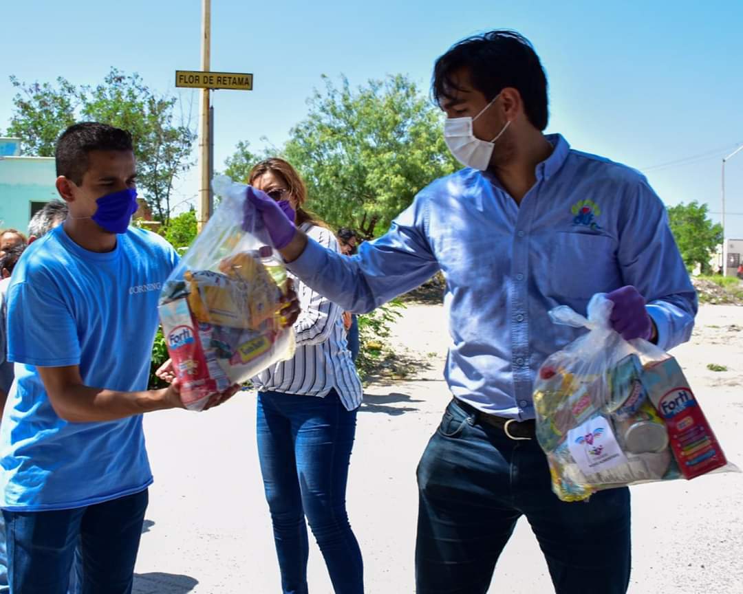 El presidente del Voluntariado Juvenil Carlos Peña Ortiz refirió que visitaron los sectores 3 y 4 del Fraccionamiento San Valentín, donde entregaron canastas básicas y kits de limpieza a los adultos mayores, personas con alguna enfermedad y a quienes se han quedado sin empleo en esta la pandemia derivada por el coronavirus.