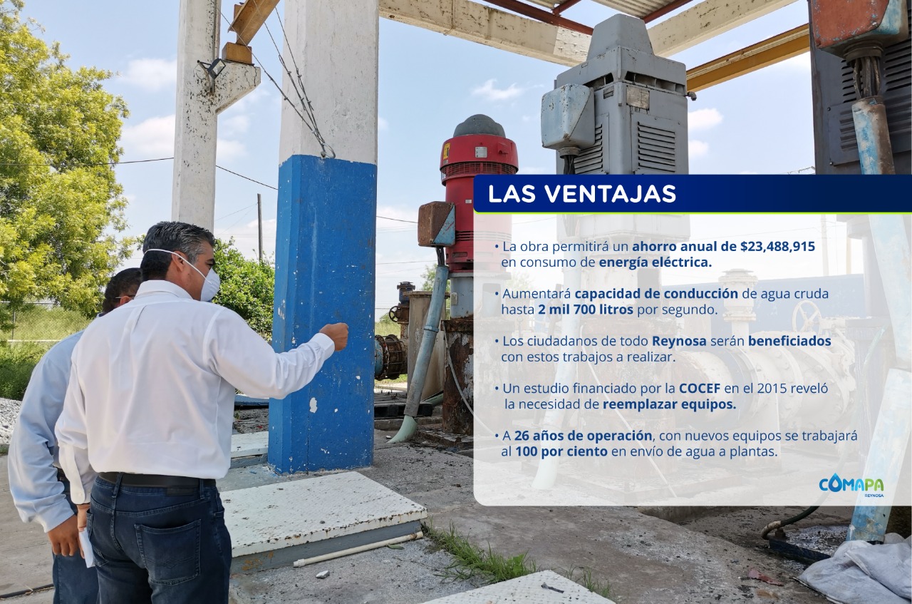 REYNOSA, TAM.-Con una inversión superior a los 53 millones de pesos, se rehabilitará el Acueducto Reynosa para garantizar agua para su potabilización y distribución en Reynosa por los próximos 20 años, además de lograr un ahorro anual de 23 millones 488 mil pesos con la eficiencia operativa.
