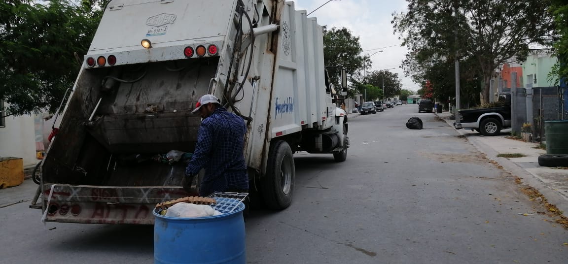 En la prestación del servicio de recolección de basura, que presta el R. Ayuntamiento de Reynosa, también se incluye el área suburbana y centros de población rural, de lunes a viernes, con cobertura complementaria los días sábado y domingo, con camiones que a diario son desinfectados para enfrentar la emergencia sanitaria por COVID-19.