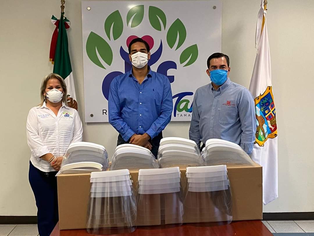 En esta ocasión agradeció el empresario Federico Dávila Cano, quién donó al voluntariado DIF Reynosa 250 caretas de plástico para protección ante la pandemia del Covid-19.