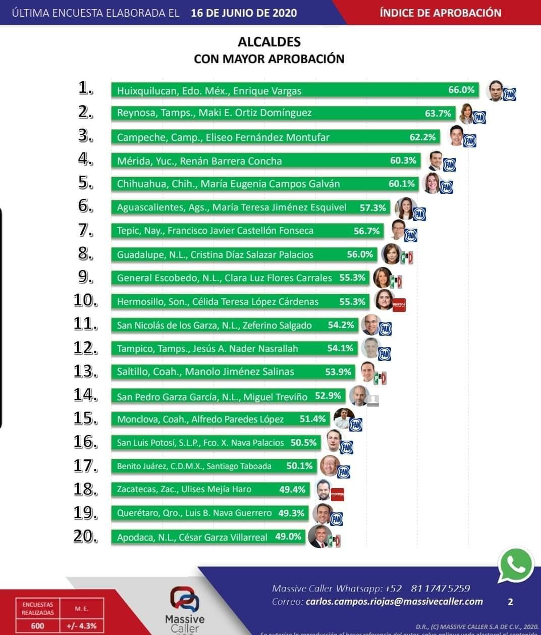 La Presidente Municipal de Reynosa, Dra. Maki Esther Ortíz Domínguez, se ubica en segundo lugar nacional en aprobación ciudadana, segíºn el íºltimo sondeo realizado por la Encuestadora Massive Caller.