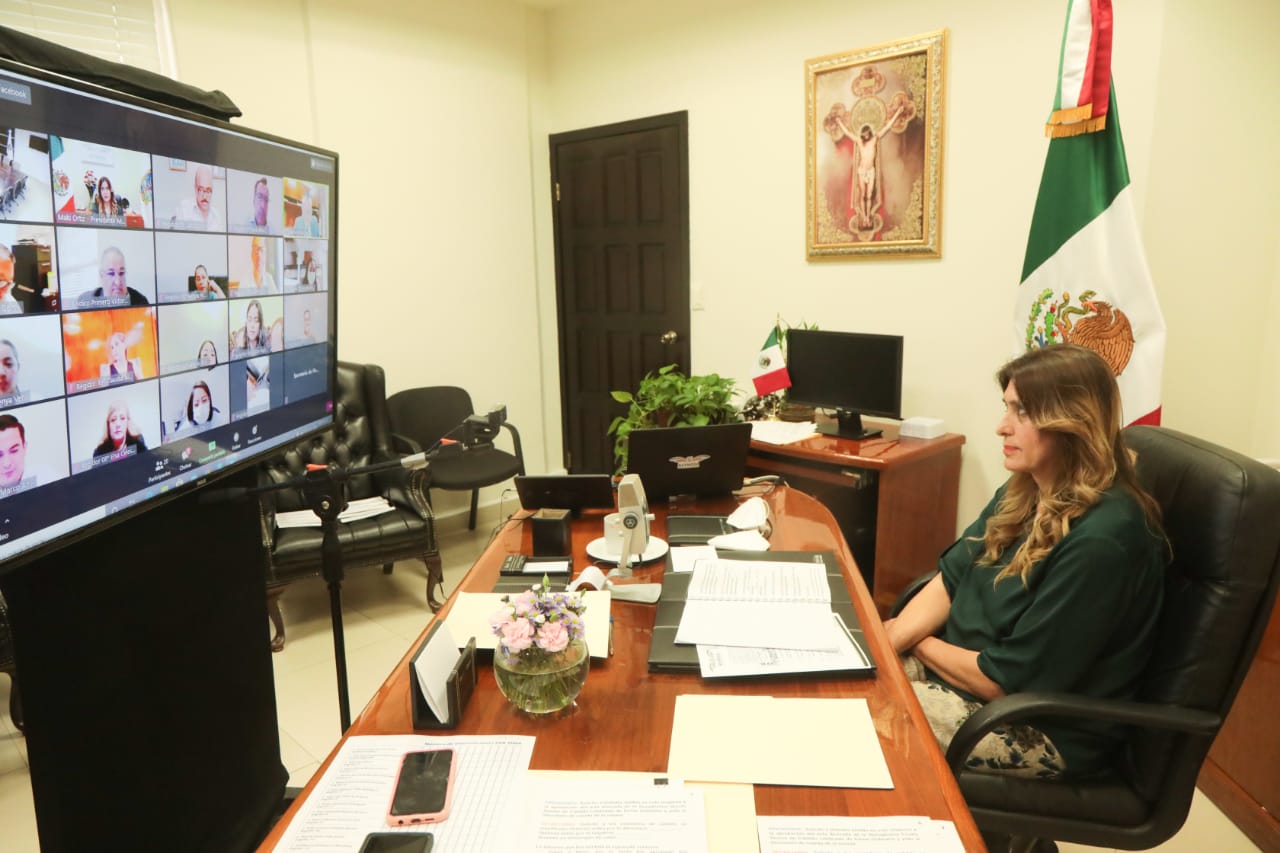 REYNOSA, TAM.-La Alcaldesa, Maki Esther Ortiz Domínguez, presidió la LXVI, Sexagésima Sexta Sesión Ordinaria del Cabildo, en modo a distancia, como así lo decidieran todos sus integrantes por unanimidad, tratando este viernes 19 de junio, dos dictámenes de la Comisión de Hacienda, Presupuesto y Gasto Píºblico.