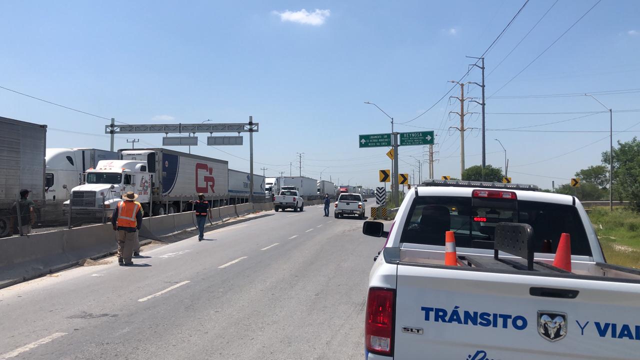 Agentes de la Dirección de Tránsito y Vialidad, acudieron este jueves 9 de julio al cruce internacional, y desahogan el tráfico vehicular en el acceso a la mencionada vía de comunicación que une a Reynosa, Tamaulipas, con la ciudad de Pharr, en Texas.