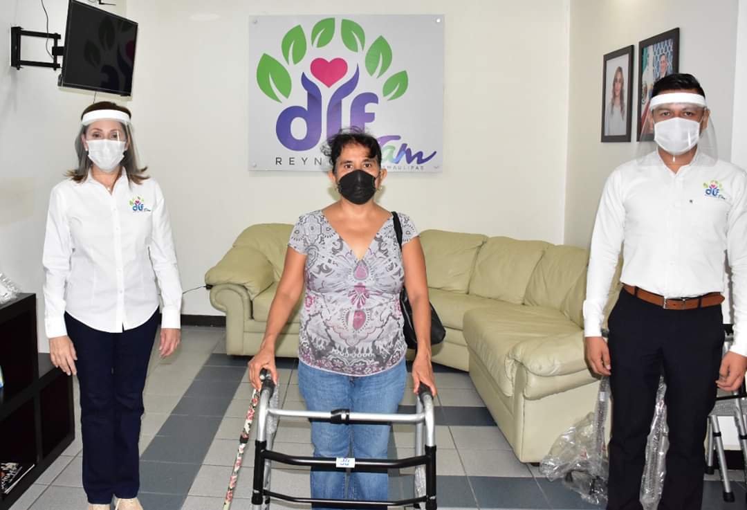 REYNOSA, TAM.-El Sistema DIF Reynosa, que encabeza Carlos Peña Garza, atiende en forma permanente a las familias con el programa de sillas de ruedas, andadores y bastones.