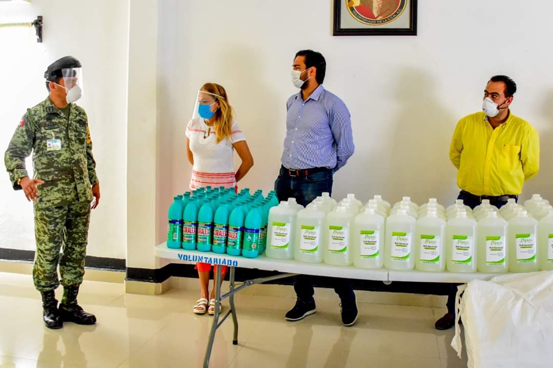 “Al comenzar la pandemia hace cuatro meses, nos dimos a la tarea de recorrer los hospitales y hoy acudimos de nuevo al Cuartel Militar de esta frontera para entregar cloro, gel antibacterial y batas quiríºrgicas para el área Covid-19” dijo.