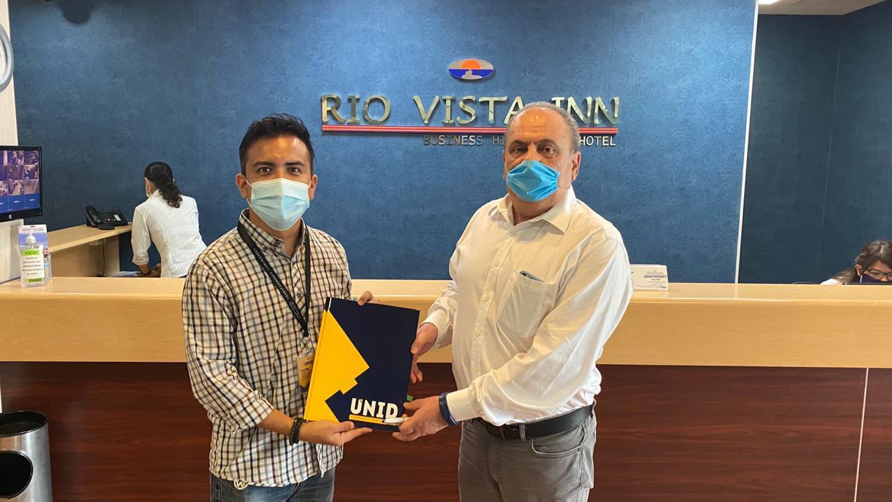 Fue la Lic. Isabel Rodriguez Ballesteros por parte de la UNID y Francisco Vallejo, en representación Iñigo Fernández Bárcena, presidente de la Asociación de Hoteles del Sur de Tamaulipas, quiénes signaron este convenio.