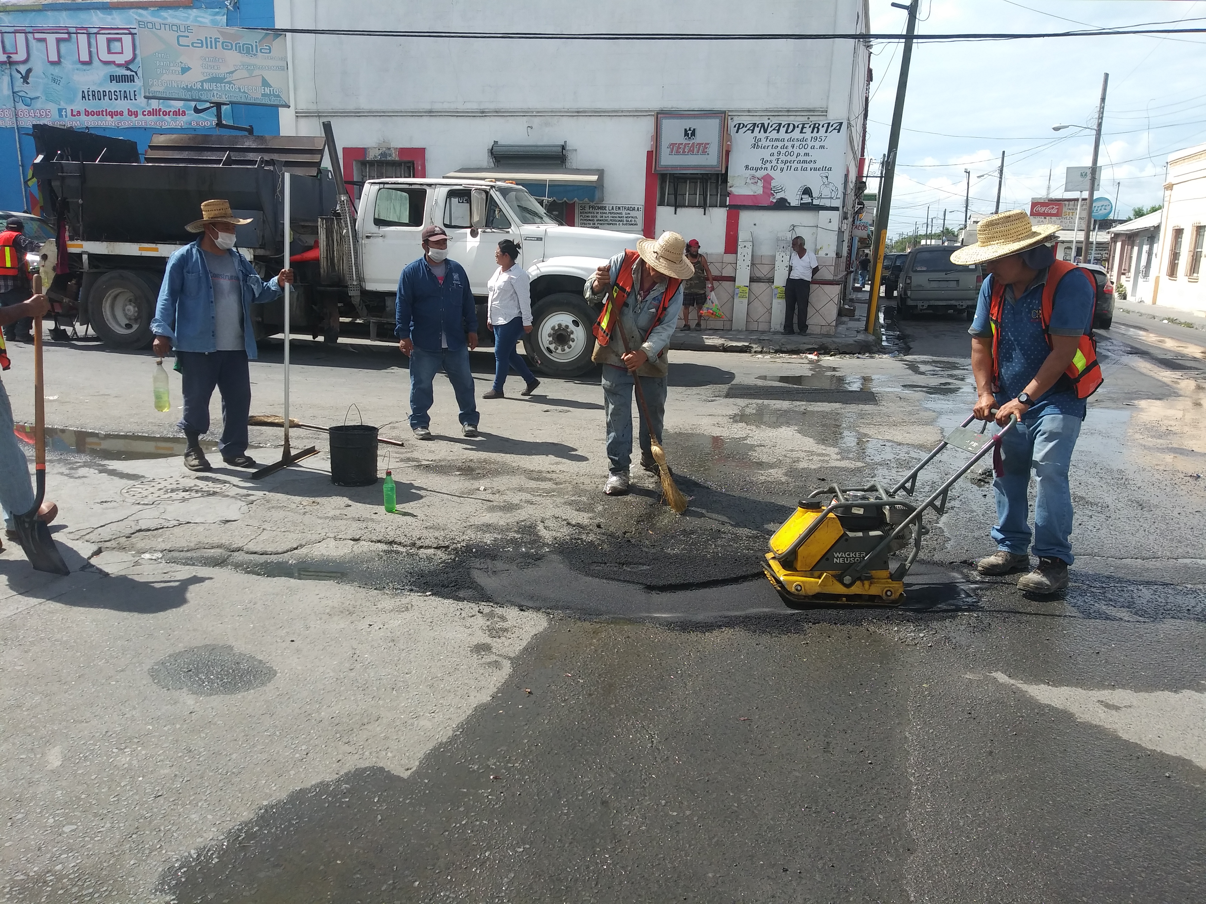 Matamoros, Tamaulipas.-Durante la mañana de este viernes las calles Guerrero y Terán, fueron cerradas a la circulación por personal de Obras Píºblicas, debido a los trabajos de bacheo que realizaron.