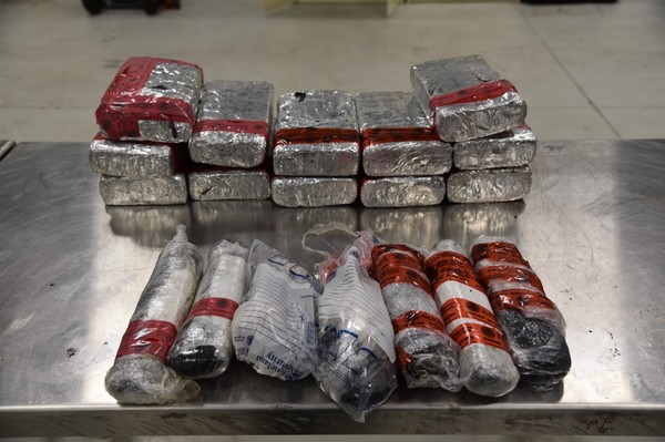 Durante una inspección de imágenes canina y no intrusiva realizada por los oficiales de CBP, se descubrieron siete paquetes que contenían un total de 7.2 kilos (16 libras) de presunta heroína, además de 12 paquetes adicionales que contenían 25.4 kilos (56 libras) de presunta metanfetamina oculta dentro del vehículo.