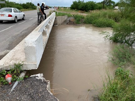 Desde ayer domingo los drenes de riego empezaron a subir de nivel por las más de 5 pulgadas de agua que dejaron las precipitaciones en esta comunidad que se encuentra sobre la carretera federal Matamoros-Ciudad Victoria a la altura del Kilómetro 262.