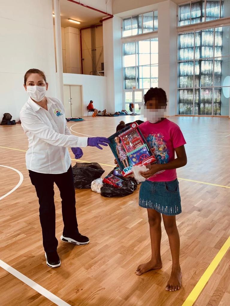 A nombre de Carlos Peña Garza, presidente del Patronato del DIF Reynosa, María del Refugio Anzaldíºa Gutiérrez, directora general del DIF, acudió a realizar un recorrido en el albergue del Polideportivo y Auditorio Municipal, y entregó alimentos, juguetes a los menores y kits con gel antibacterial.