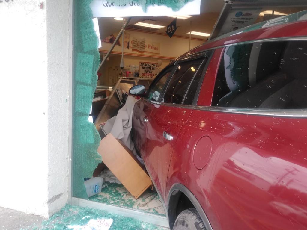 Matamoros, Tamaulipas.- Durante la mañana de este domingo una mujer de la tercera edad se llevó el susto de su vida, al perder el control de su camioneta que terminó incrustada dentro de una farmacia ubicada en la avenida Sexta con Bilbao en la colonia Euzkadi de este municipio.