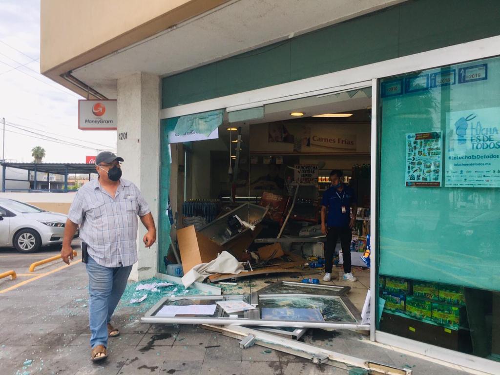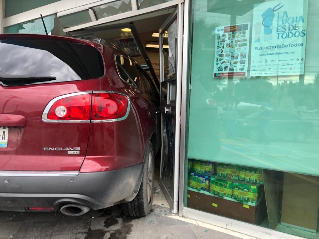 Hasta el momento se desconocen las causas que provocaron que la abuelita brincara los tubos de contención, terminando su andar dentro del establecimiento, llevándose una caja de cobro y estantes de mercancías.