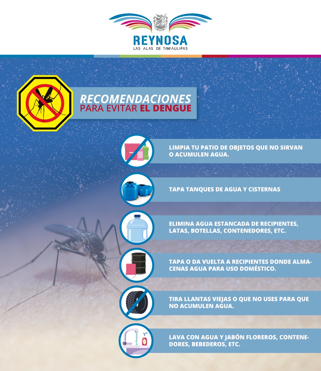 REYNOSA, TAM.-La Dirección de Salud y Atención a Grupos Vulnerables, de la Secretarí­a de Desarrollo Social, atendiendo la instrucción de la Alcaldesa, la Dra. Maki Esther Ortiz Domí­nguez, emite recomendaciones a la población para lograr abatir la reproducción de mosquitos transmisores de enfermedades virales.