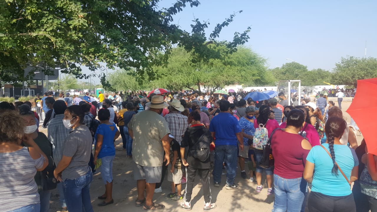 Reynosa, Tamaulipas.-Decenas de personas de diverso sectores populares, acudieron a la colonia Humberto Valdez, para esperar la llegada del Presidente de México, Andrés Manuel López Obrador.